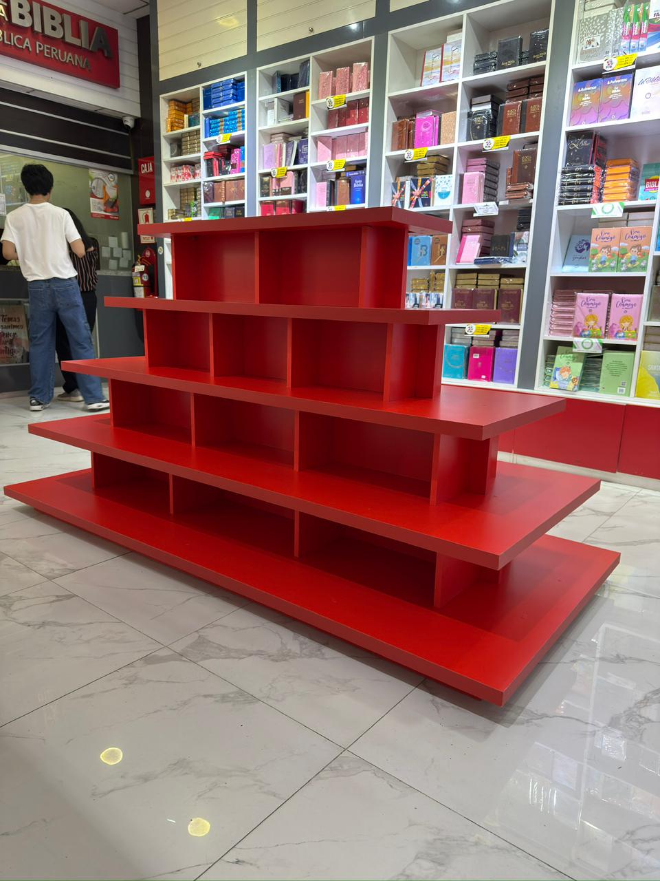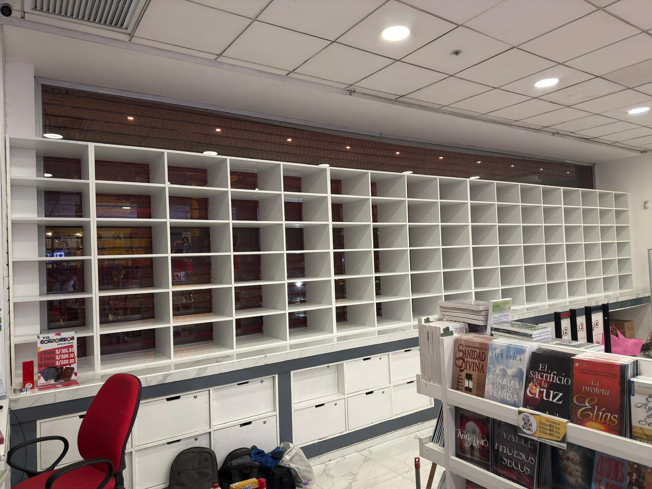 El resultado fue un mueble exhibidor de libros a medida, que permite ordenar, almacenar y exhibir libros de forma clara, mejorando la experiencia del cliente y el uso del espacio dentro de la librería.