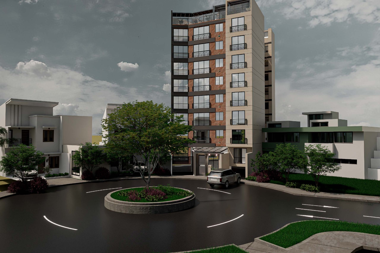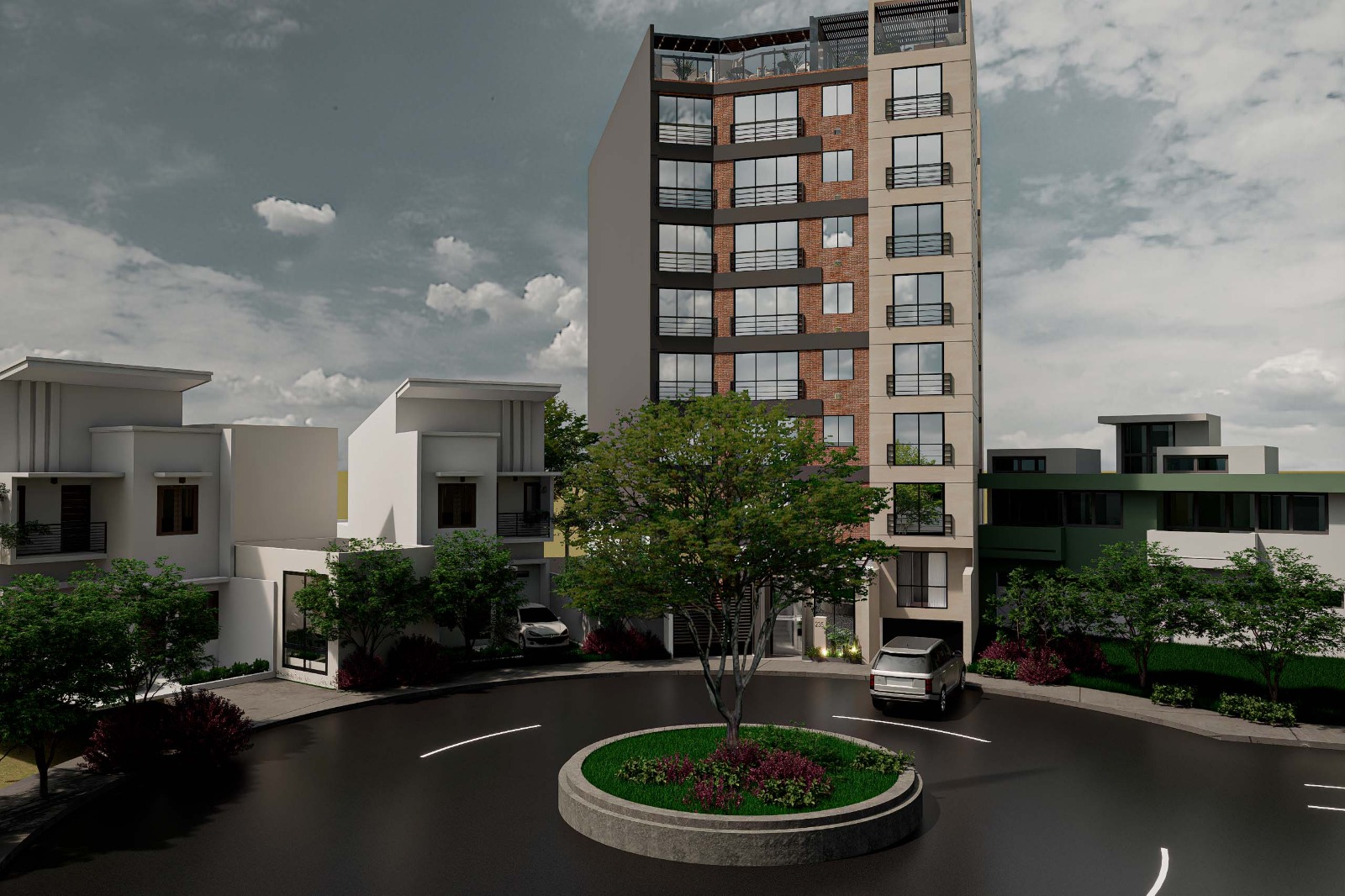 Este edificio multifamiliar destaca por su propuesta contemporánea, integrando materiales como el ladrillo cara vista y concreto expuesto para resaltar la fachada, mientras que en interiores priorizamos la funcionalidad sin perder calidez: cocinas compactas y eficientes, con acabados que equilibran lo moderno con lo acogedor.