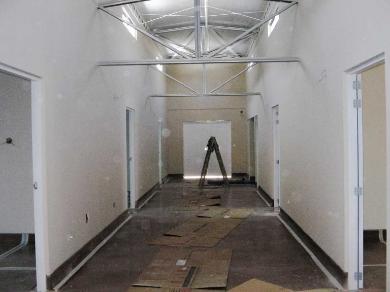 Construcción de hospital en Pisco: counters en melamina, tabiquería en drywall, mesas en MDF y metal.